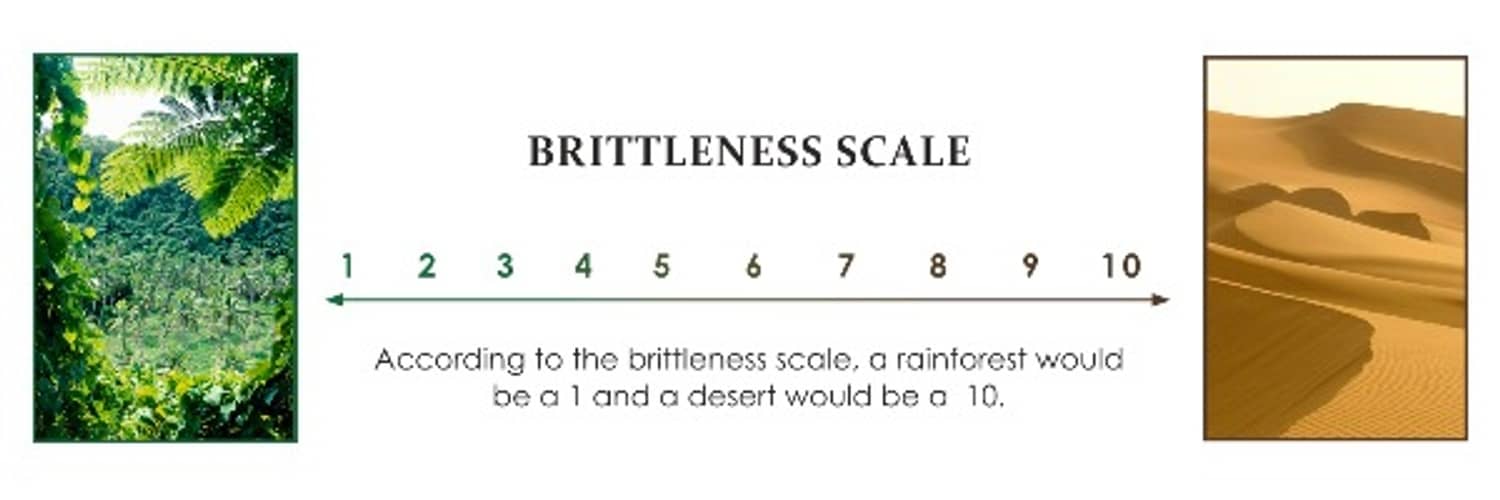The brittleness scale also considers the plant decomposition rate for your area, how quickly bare soil gets covered by biology, and the dynamics of community succession.